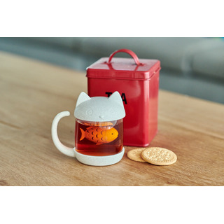 Savourez une tasse de votre thé préféré en compagnie de cet adorable chaton et du poisson qui vit à l'intérieur.