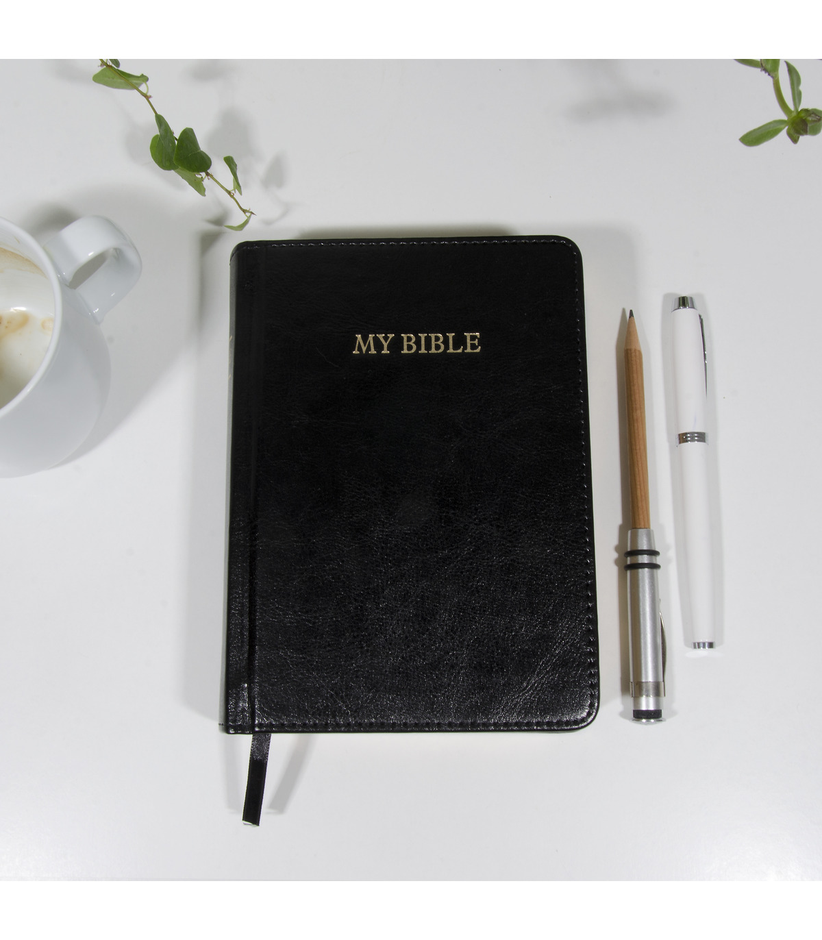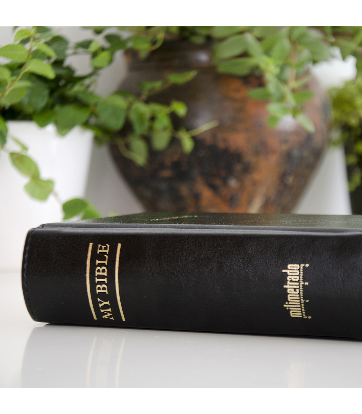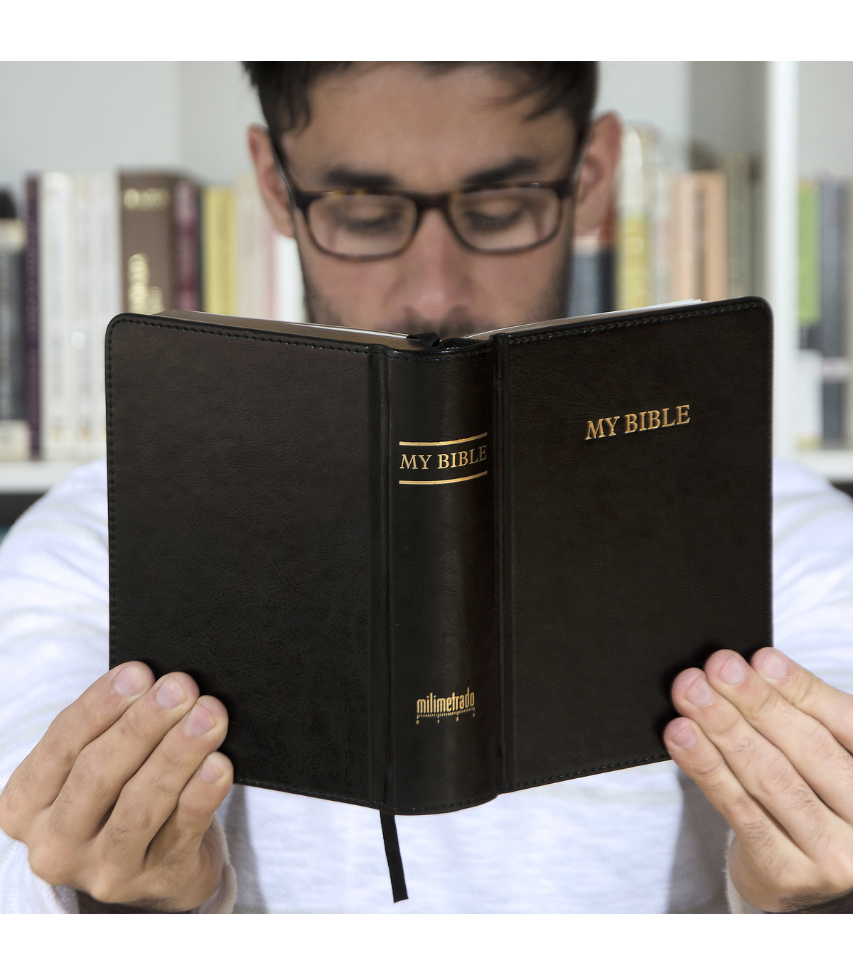 My Bible est conçue exactement comme une bible. Vous êtes-vous déjà demandé pourquoi les bibles sont telles qu'elles sont ? Leur principale caractéristique est qu'elles utilisent du papier bible, un papier opaque très fin, résistant à la tension, à l'arrachement et au pliage, qui permet d'imprimer plus de 1 000 pages dans un seul livre. Le papier biblique a été inventé dans ce but : pouvoir imprimer tous les livres qui composent la Bible en un seul volume.